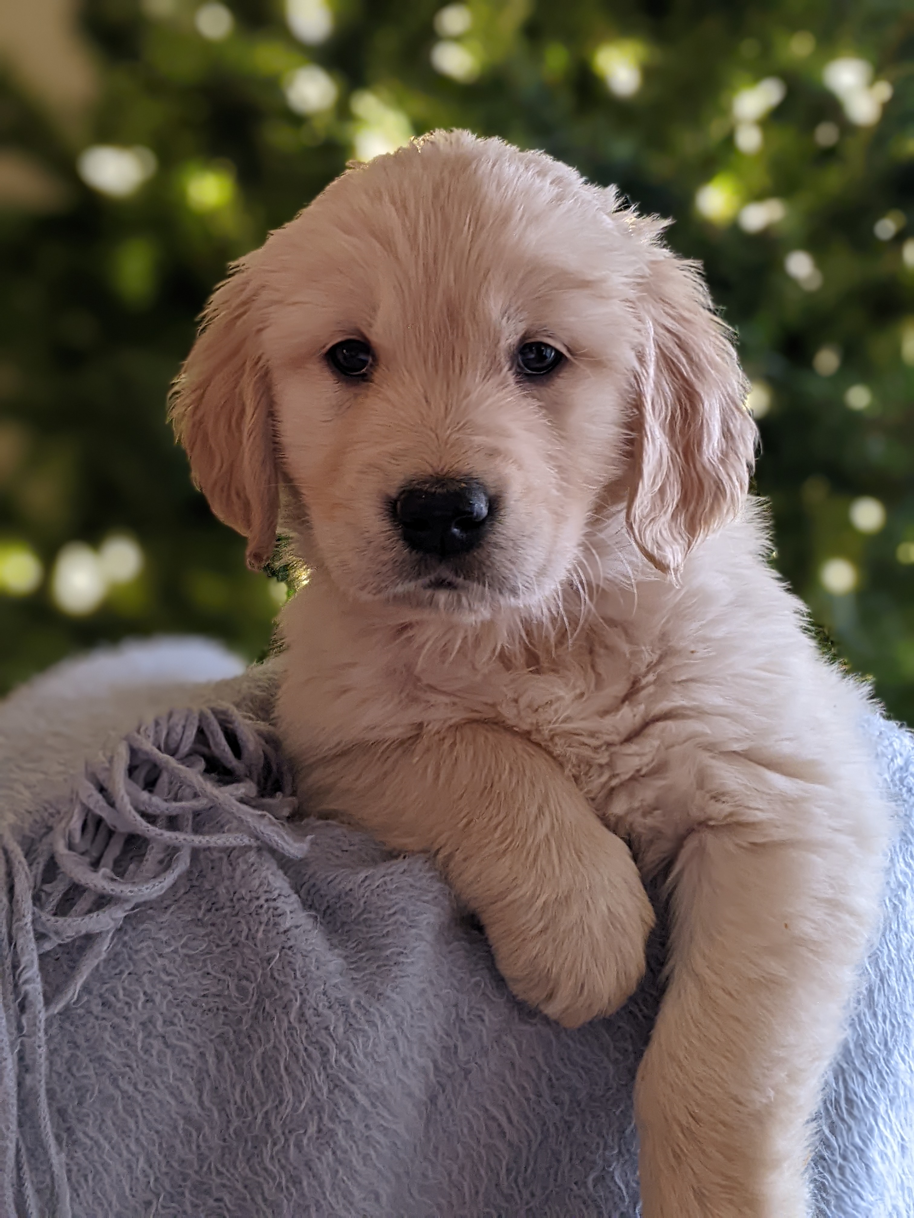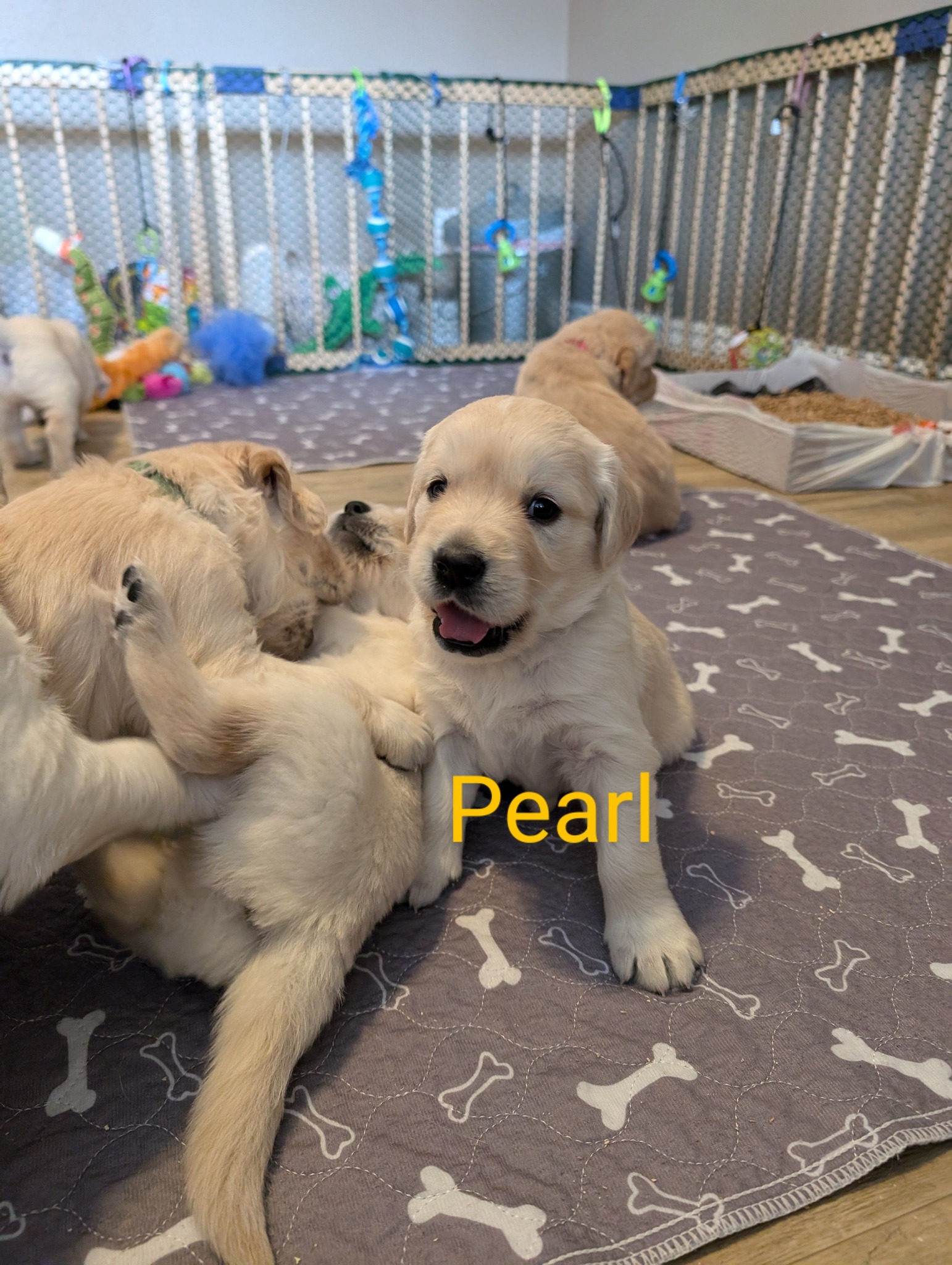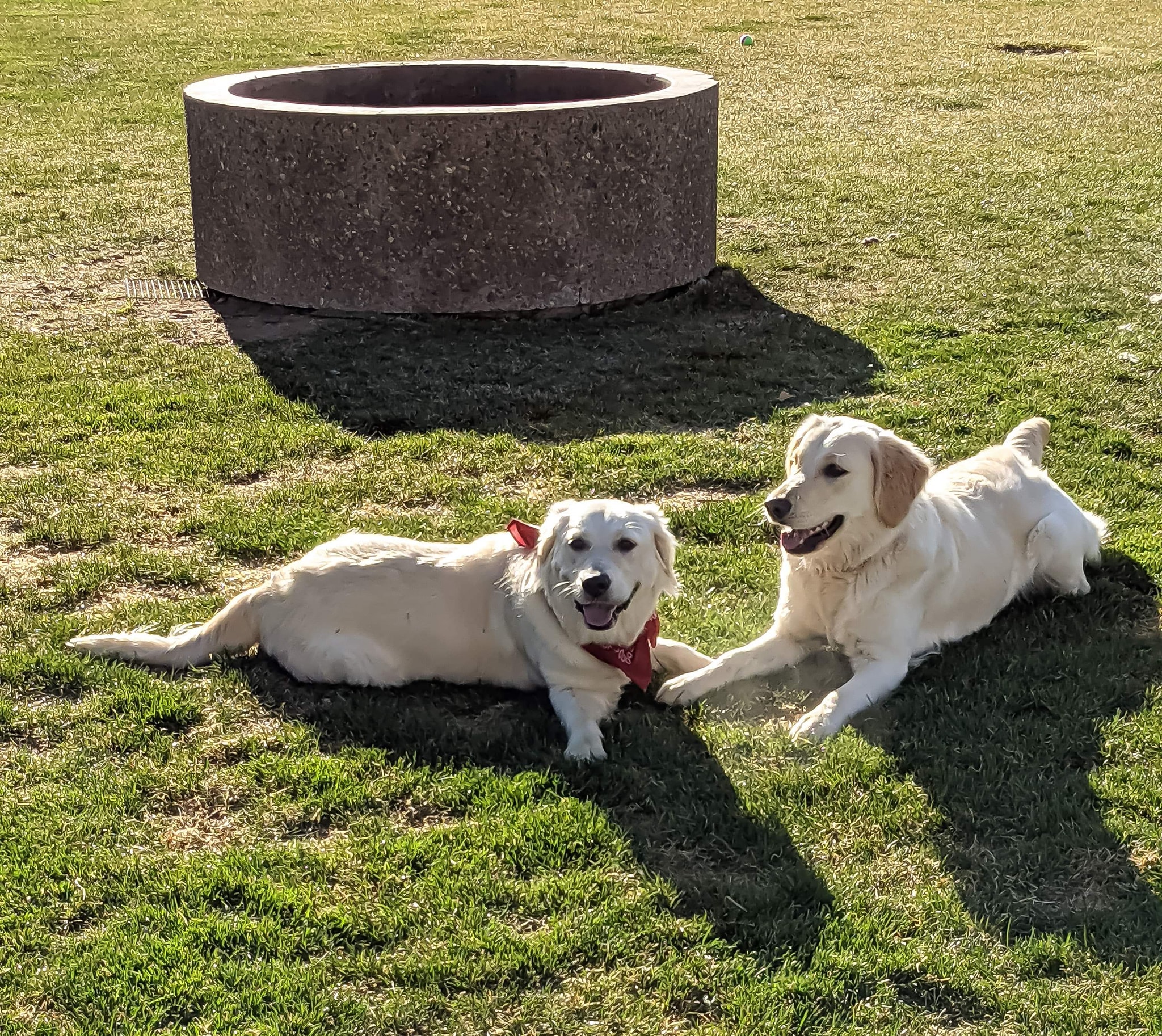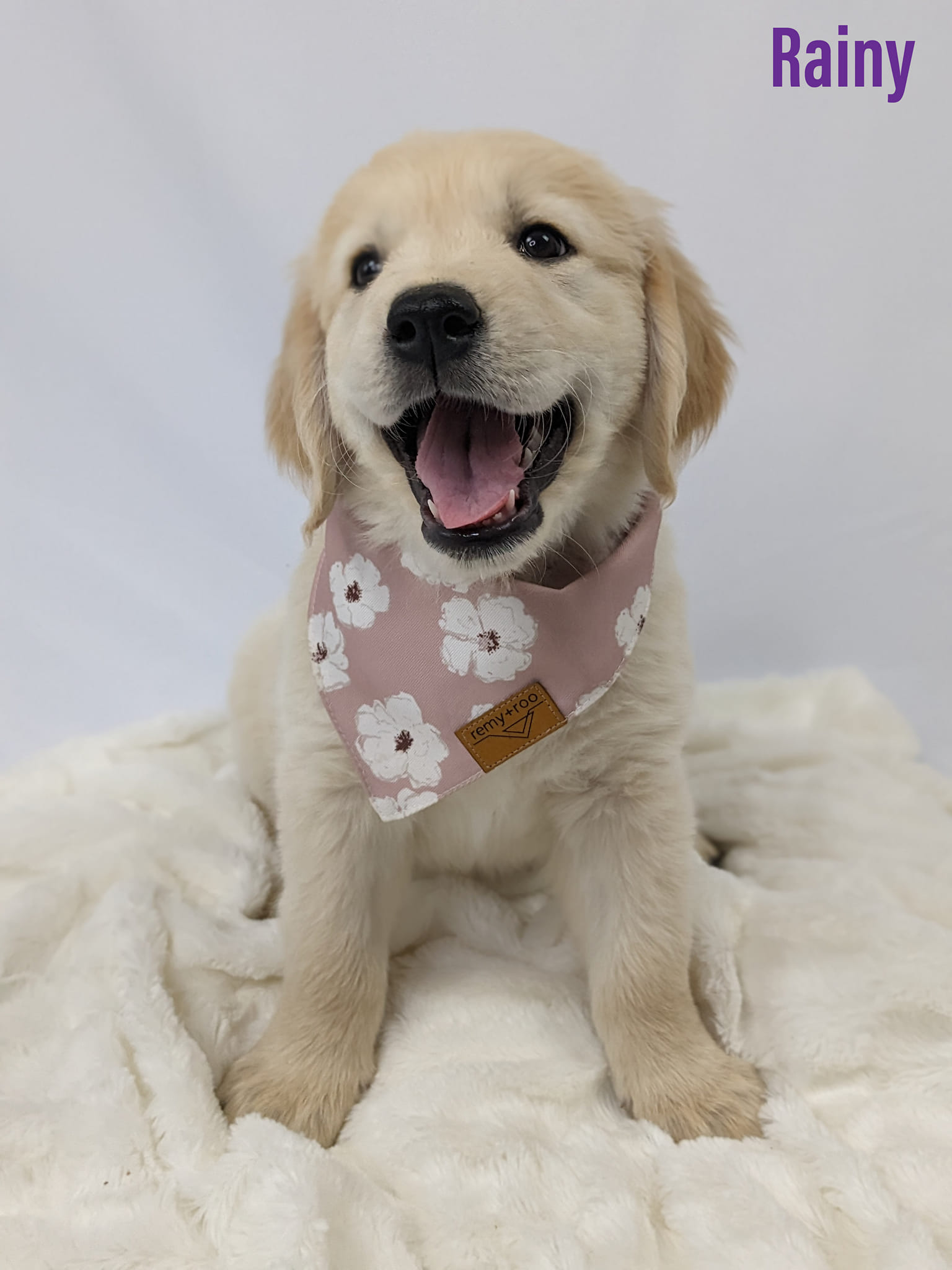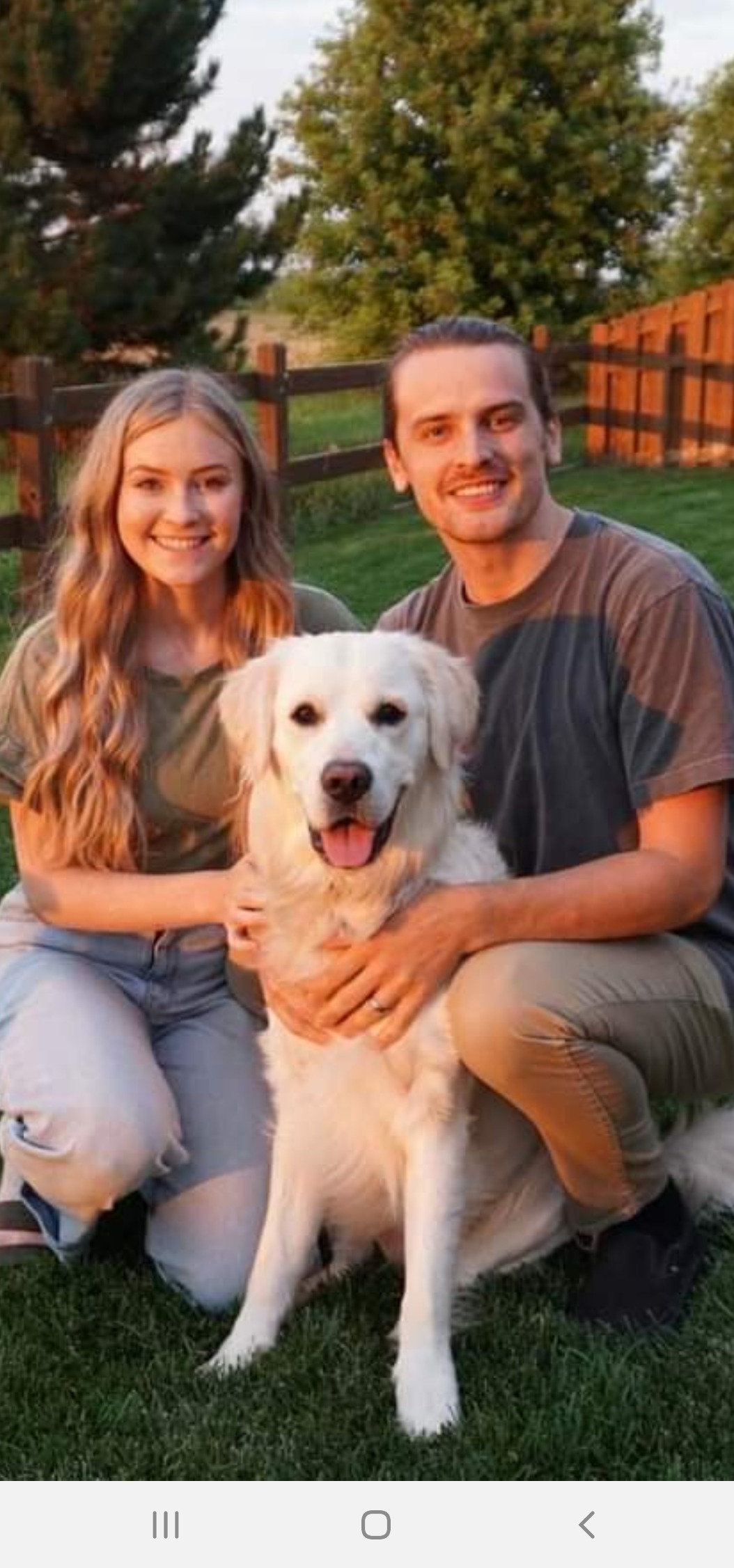 “This is our Bessie (with red bandana) meeting her littermate sister, Carolina from Mountain Sky Golden's (the breeder kept Carolina), for the first time since she was a baby. We are so lucky to have found such a great breeder! We drove over 44 hours total to meet our puppy and pick her up. It was so worth it that we are doing it again to get another puppy from them, which we will be picking up in two weeks. Bessie has the best temperament! She is smart, sweet, and loves all dogs and people. Even though she is only 10 months old, she is always mistaken for an adult because she is so well behaved. She is a natural emotional support animal, she will immediately comfort any one of the family members when she notices they are upset. We plan on getting her certification for being a service dog since she seems to pick up on our autistic daughter's needs so naturally. We believe we couldn't have picked a better breeder! She is also easy to communicate with, flexible, and works with us on our wants and needs with the puppy.” -Amanda H.
